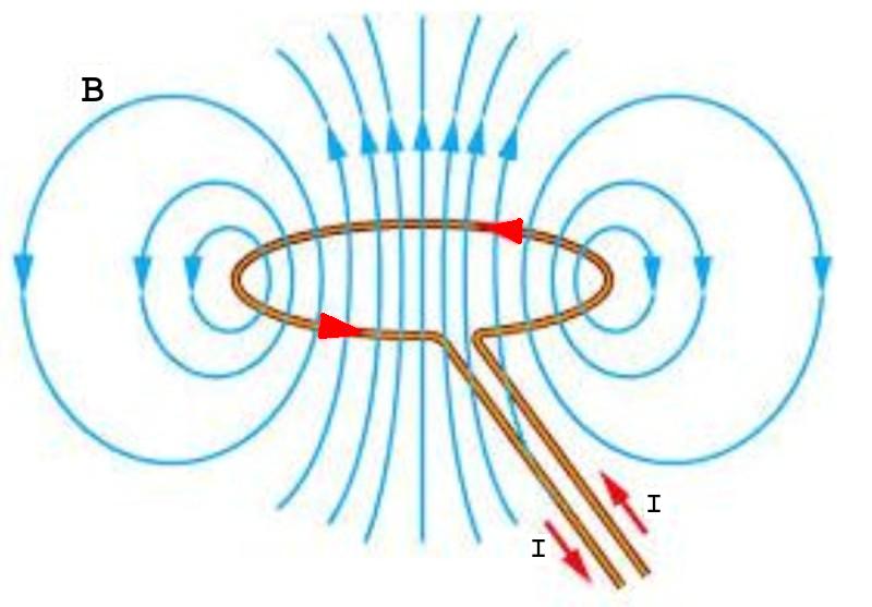 Magnetic field created by a circular current loop.